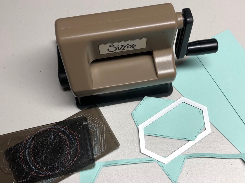 The best way to create the 1/8″ inset strips is to start with a wider piece of paper and just cut of the 1/8″ strips. Try to make sure to keep them to 1/8″ (or at least make sure that the 2 you use total to 1/4″ total so that you have the right spacing on your matting once assembled.