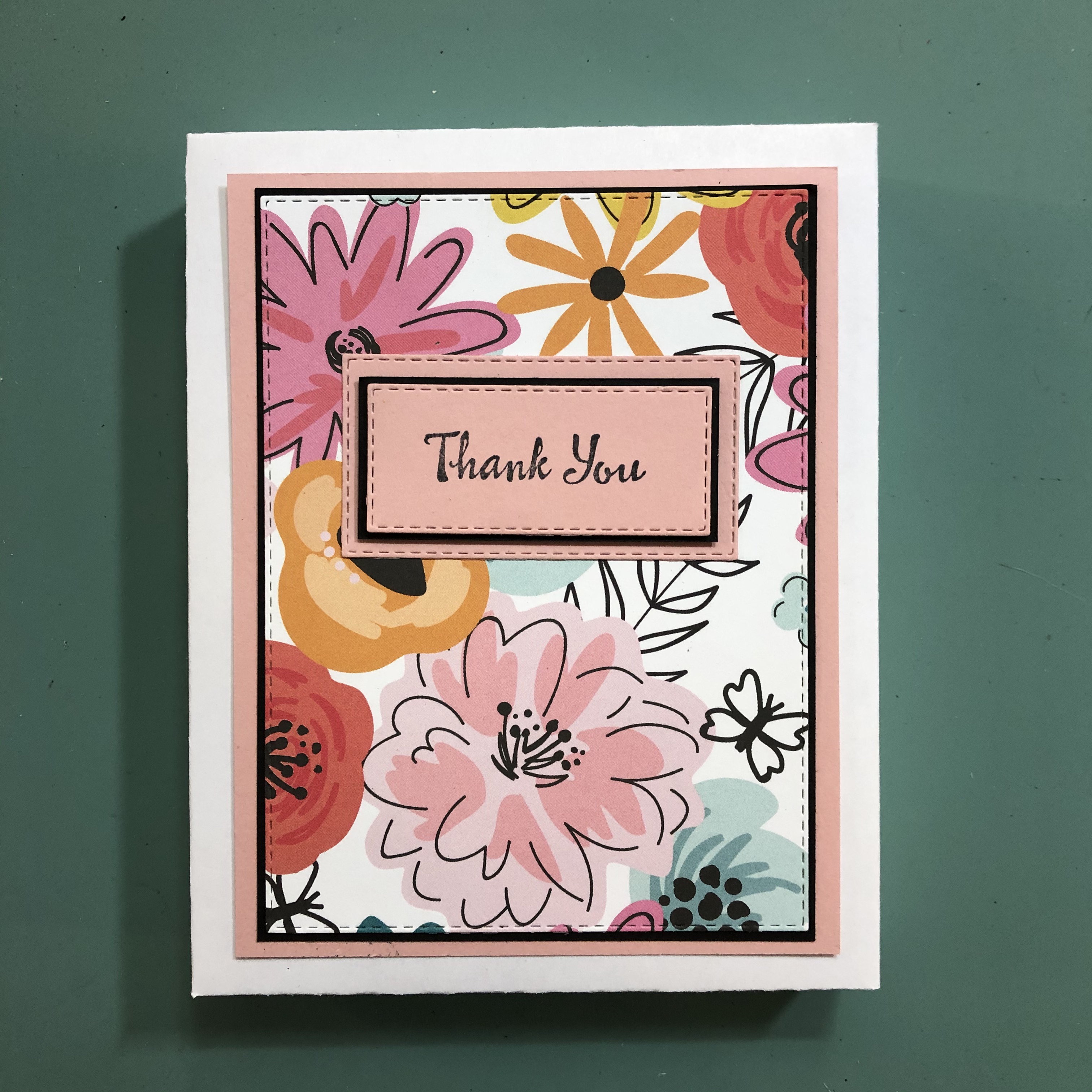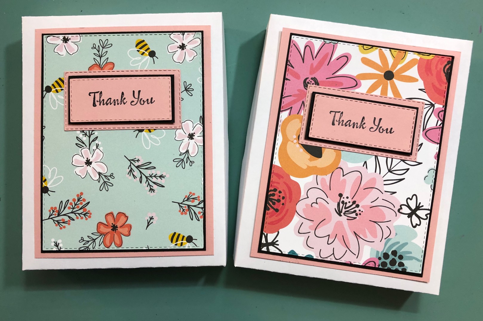 Here are the Treat Boxes I made during today’s live video over at Creative Treat Club’s Facebook Page. Have a peek if you’re interested in learning how to make these boxes. They hold A2-sized (4-1/4″ x 5-1/2″) cards.The patterned paper is from the April 2020 Scrapbook and Cards Today Sampler pack. I’ve paired it with coordinating Stampin’ Up! colours including Blushing Bride and Basic Black. The thank you sentiment stamp is from Stampin’ Up! The ink is Memento Tuxedo Black.The patterned paper is from the April 2020 Scrapbook and Cards Today Sampler pack. I’ve paired it with coordinating Stampin’ Up! colours including Blushing Bride and Basic Black. The thank you sentiment stamp is from Stampin’ Up! The ink is Memento Tuxedo Black.The patterned paper is from the April 2020 Scrapbook and Cards Today Sampler pack. I’ve paired them with coordinating Stampin’ Up! colours including Blushing Bride and Basic Black.