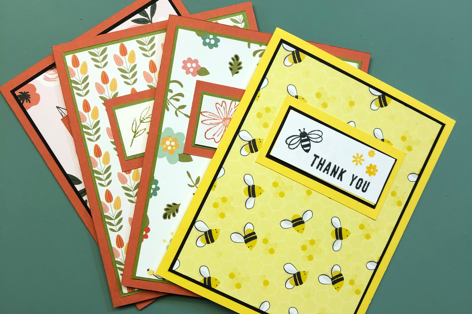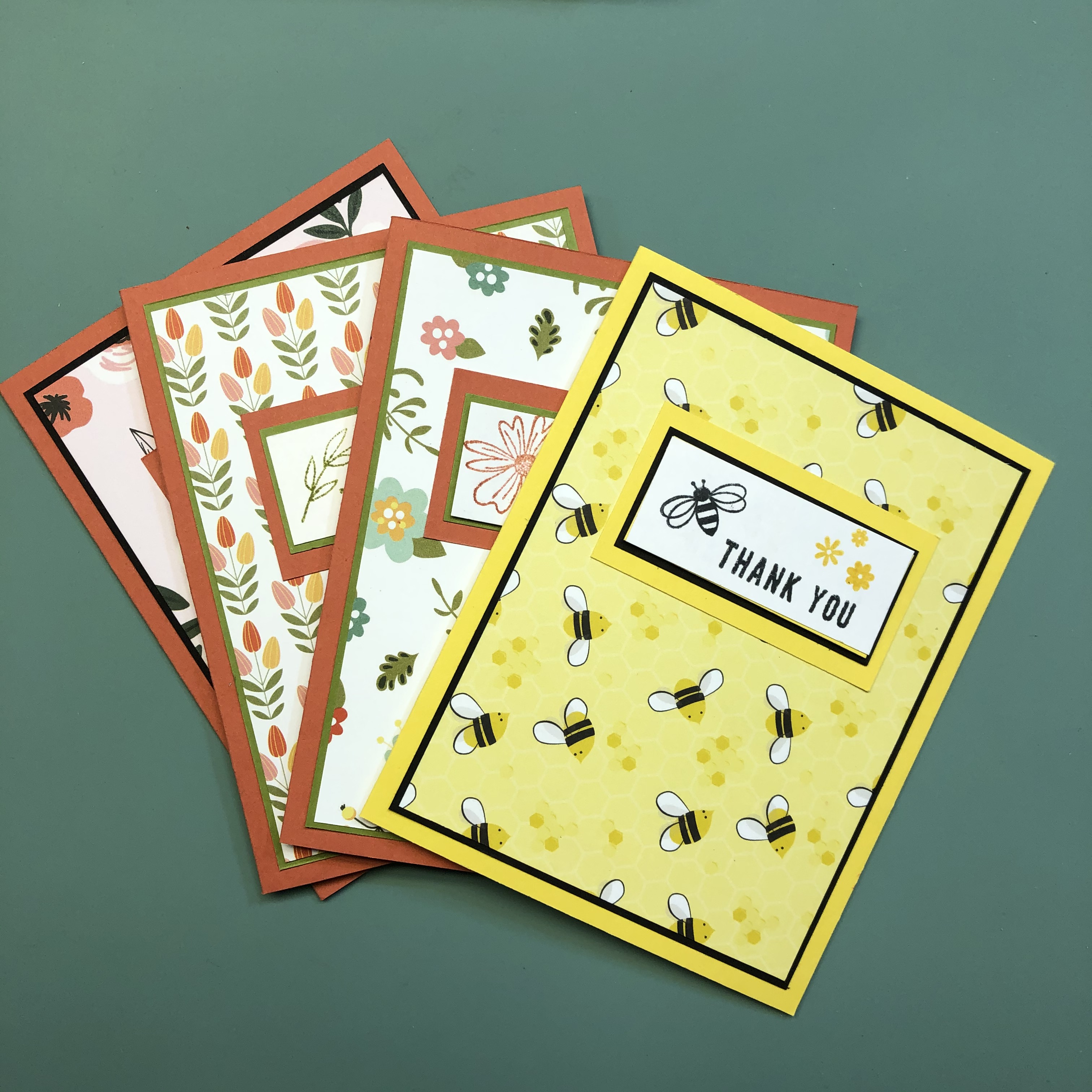 Have a peek over on Creative Treat’s Facebook Page to see how I made these cute Thank You cards.The paper is from Scrapbook and Cards Today’s April Sampler Pack as is the thank you stamp. The coordinating cardstock and inks are Daffodil Delight and Basic Black (Memento Tuxedo Black ink) from Stampin’ Up!. The bee and flower stamps are from a recent Stampin’ Up! PaperPumpkin kit.The paper is from Scrapbook and Cards Today’s April Sampler Pack as are the stamped images and sentiment. The coordinating cardstock and ink are Old Olive and Terra Cottta Tile from Stampin’ Up!. The paper is from Scrapbook and Cards Today’s April Sampler Pack as are the stamped images and sentiment. The coordinating cardstock and inks are Old Olive and Terra Cotta Tile from Stampin’ Up!. The paper is from Scrapbook and Cards Today’s April Sampler Pack as is the thank you and flower stamps. The coordinating cardstock and inks are Terra Cotta Tile and Basic Black (Memento Tuxedo Black ink) from Stampin’ Up!.