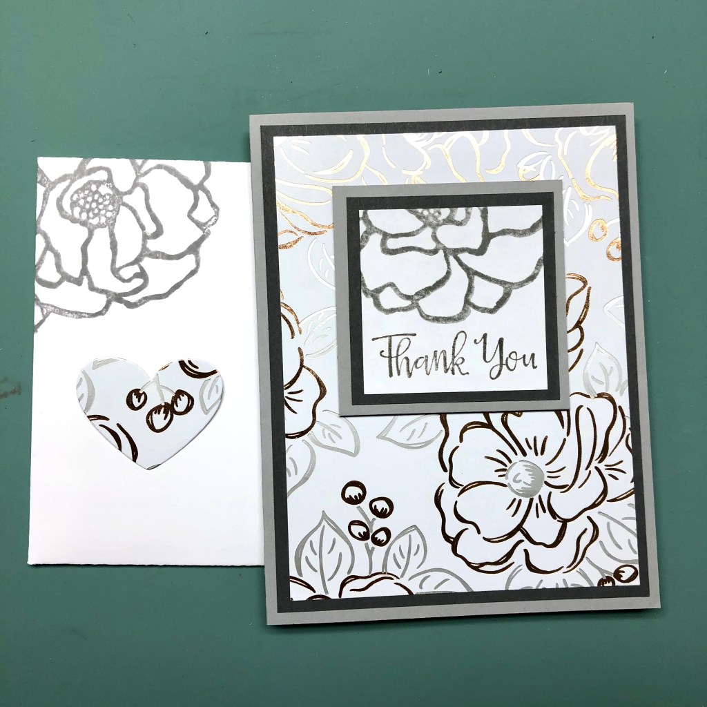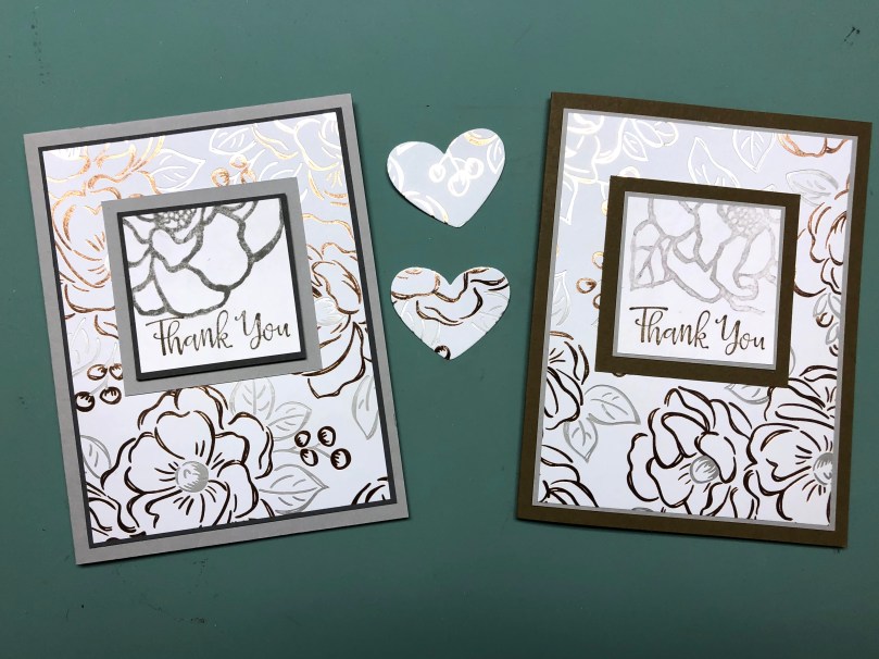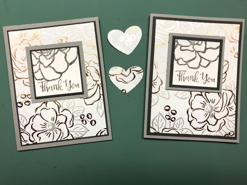 Which do you prefer? 1/8″ matting or 1/4″ matting? How about the colours? Two tones of gray or pairing the smoky slate with the brown of soft suede? If you have made cards with this paper or using this card design I’d love to see photos. Please add links in the comments below.