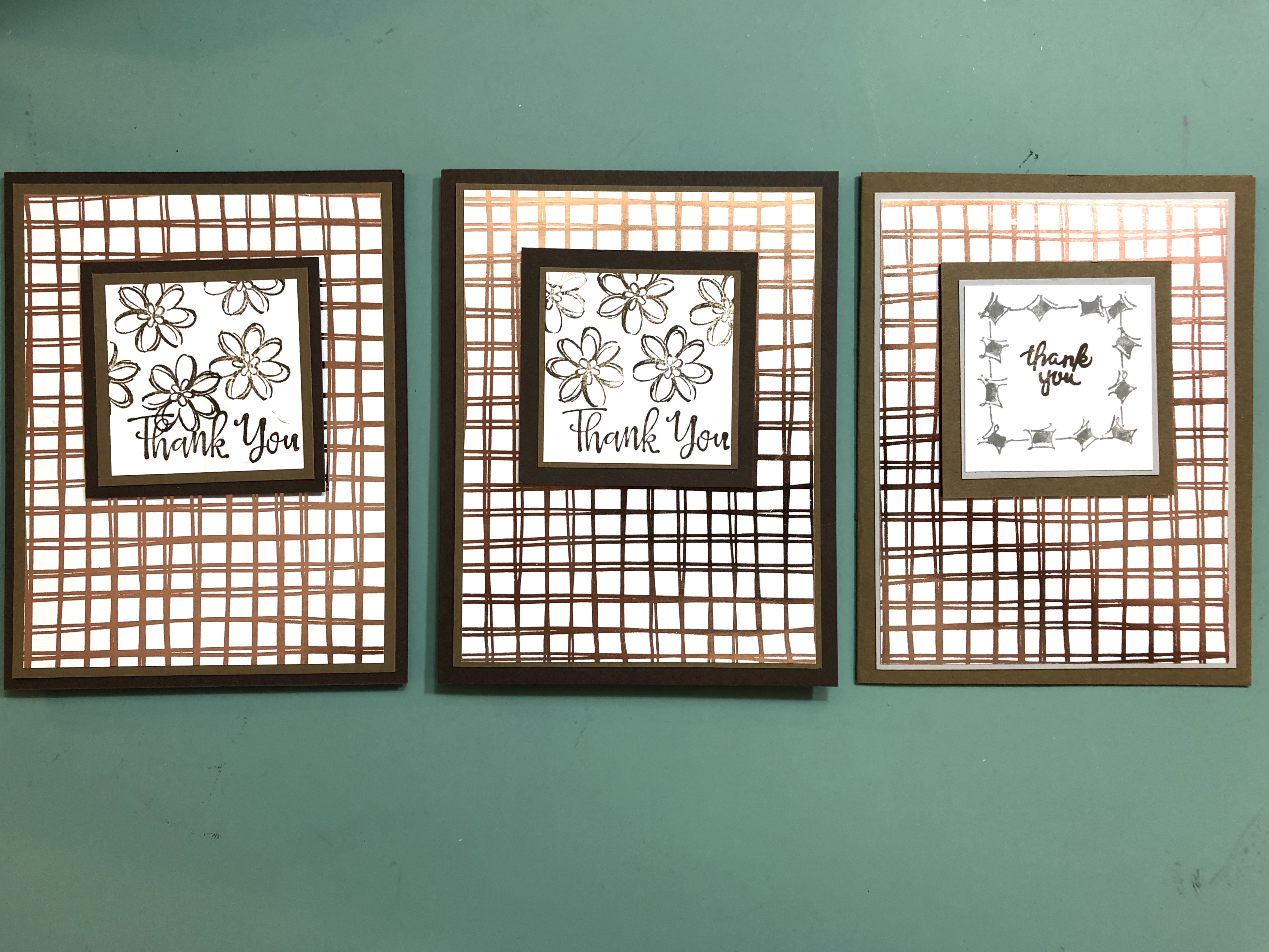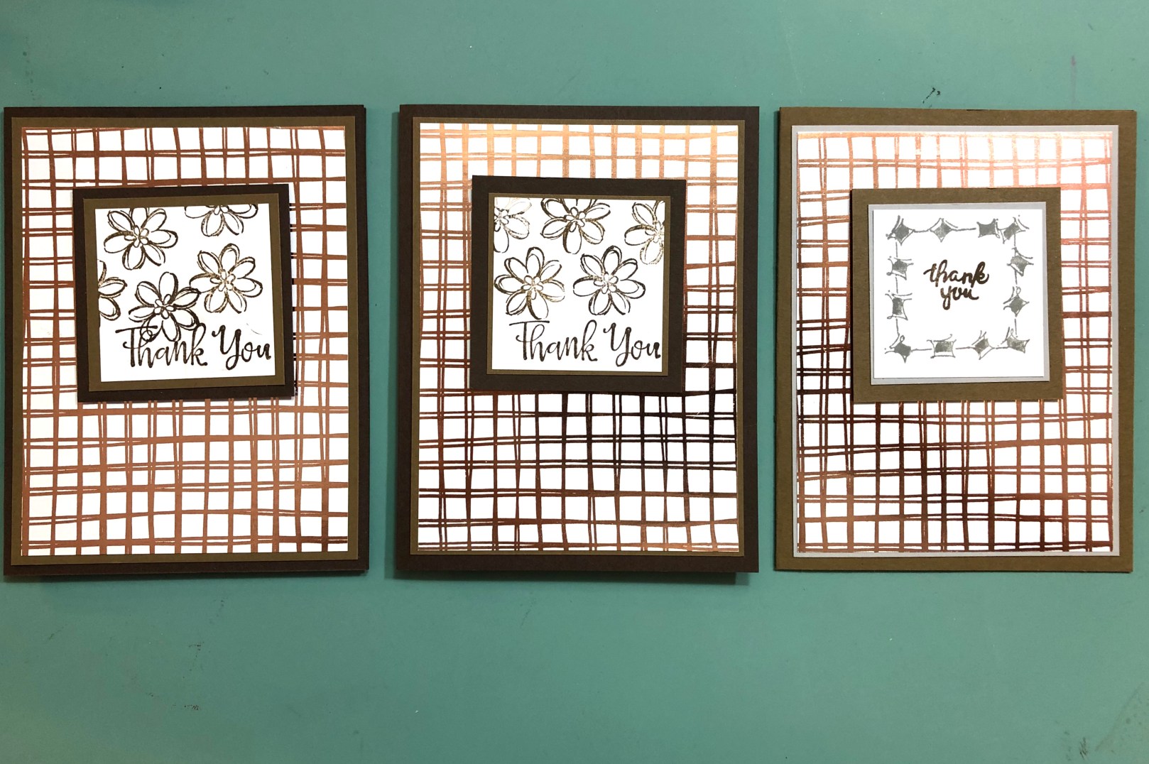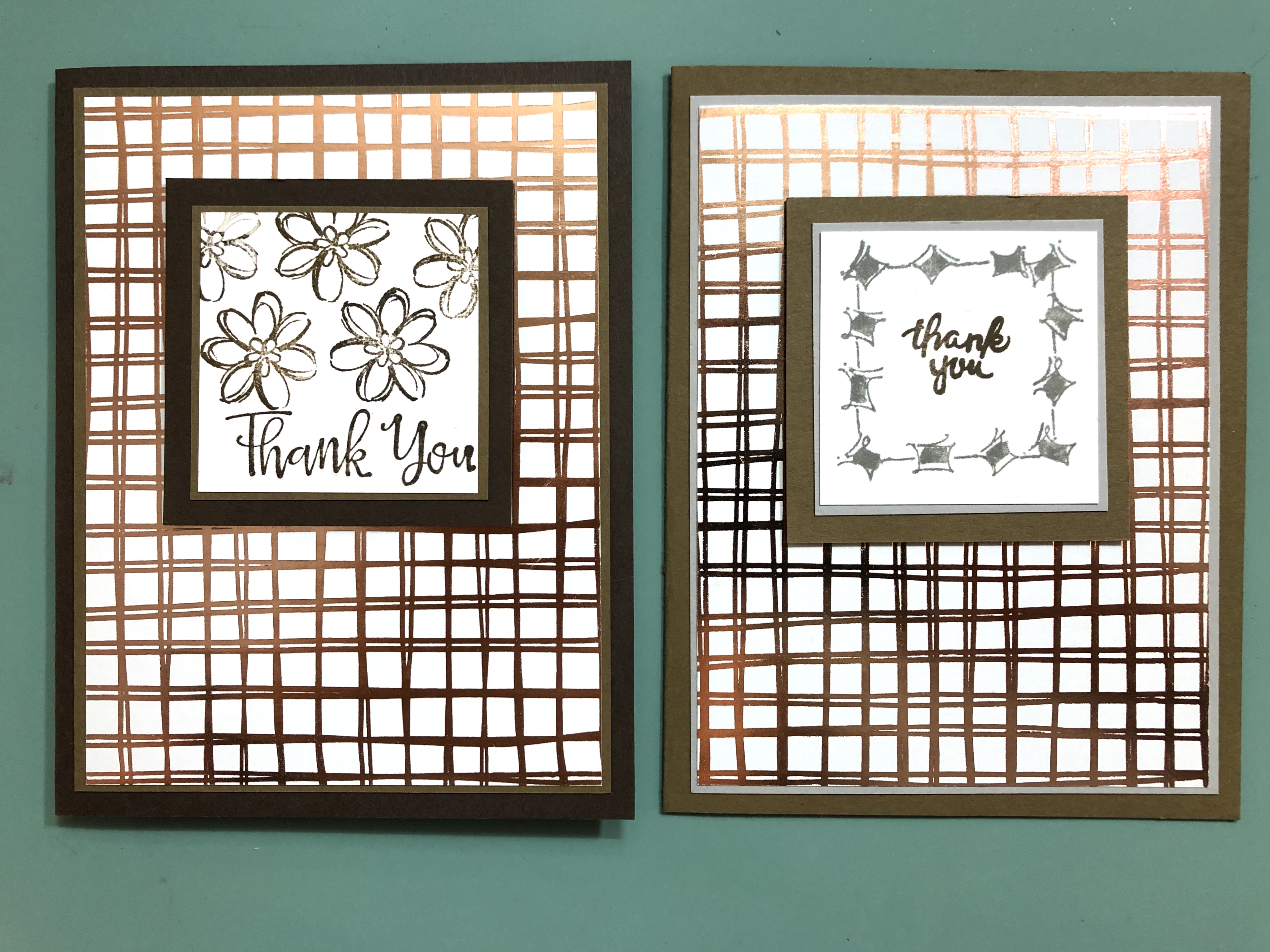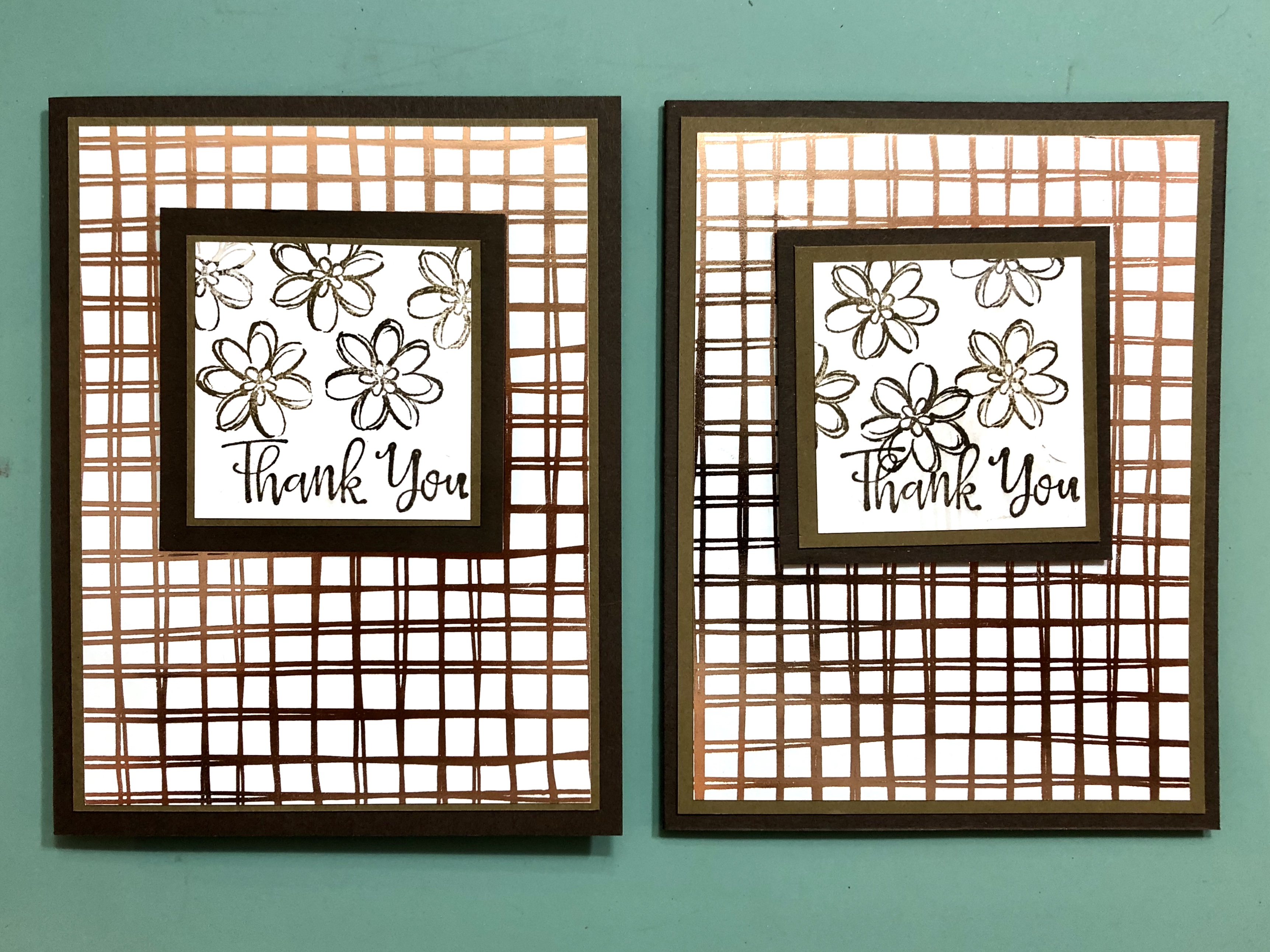 These thank you cards were made using Stampin’ Up! card stock, papers, inks and stamps including Flowering Foils Designer Series Paper (DSP). The colours used included Early Espresso, Soft Suede as well as Smoky Slate. You can see the difference in how the 1/8″ versus 1/4″ matting looks in the finished cards as well as how different mat colour combinations affect how the card looks too.These thank you cards were made using Stampin’ Up! card stock, papers, inks and stamps. The colours used included Early Espresso, Soft Suede. You can see the difference in how the 1/8″ versus 1/4″ matting looks in the finished cards.These thank you cards were made using Stampin’ Up! card stock, papers, inks and stamps. The colours used in the left are Early Espresso, Soft Suede. The ones in the right are Soft Suede and Smoky Slate. Notice how different mat colour combinations affect how the card looks.These thank you cards were made using Stampin’ Up! card stock, papers, inks and stamps. The colours used included Early Espresso, Soft Suede as well as Smoky Slate. You can see the difference in how the 1/8″ versus 1/4″ matting looks in the finished cards as well as how different mat colour combinations affect how the card looks too.These thank you cards were made using Stampin’ Up! card stock, papers, inks and stamps including Flowering Foils Designer Series Paper (DSP). The colours used included Early Espresso, Soft Suede as well as Smoky Slate. You can see the difference in how the 1/8″ versus 1/4″ matting looks in the finished cards as well as how different mat colour combinations affect how the card looks too.