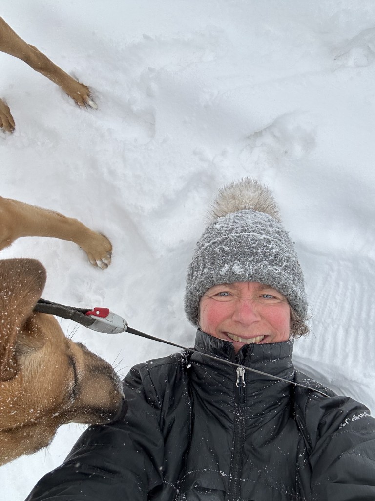 And so I savoured the crunch of the snow under my boots. I savoured the snow gently falling on my face. I savoured the fresh, crisp scent of a morning amongst the trees. I savoured the sight of Luna burying herself in the snow, rolling about and making snow angels. I savoured the sound of Luna’s tags jingling as she shook off some snow. I savoured this silliness of making my own snow angel.