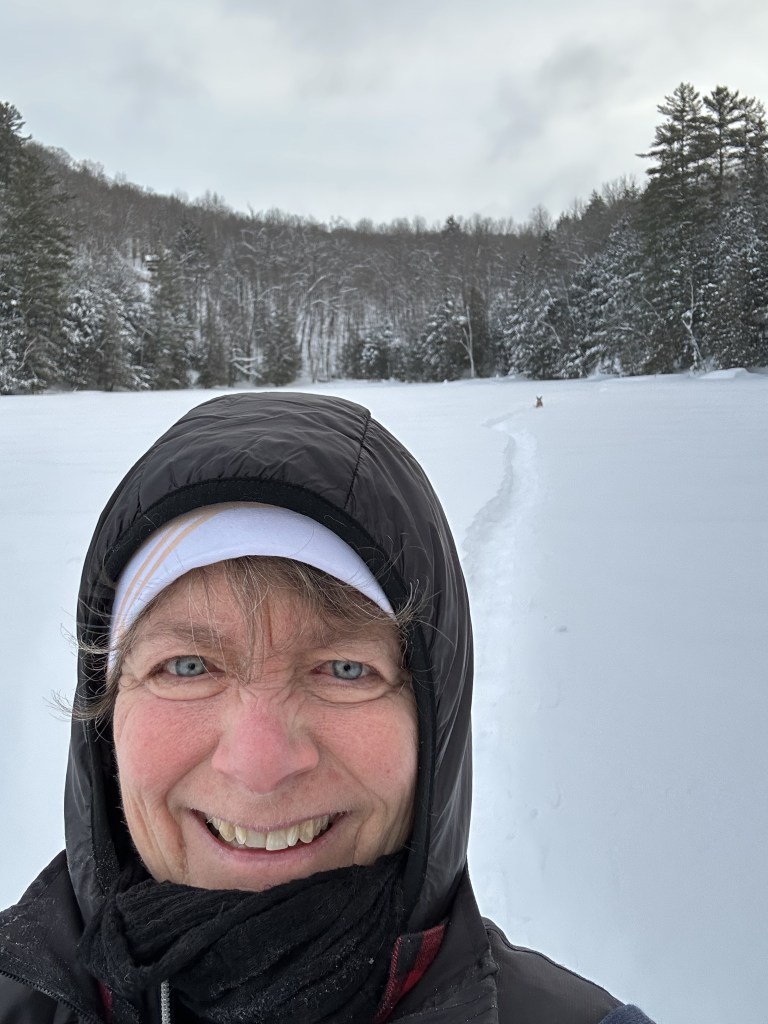 This morning’s walk was a snowshoe with Luna on the lake. It was a blustery morning. The overnight winds had filled in a lot of the hard-earned snowshoe trails we had built yesterday. Luna got a bit of snow caught in one of her paws, as she does occasionally. So I cleaned off her paw and set off again. Except Luna wasn’t keen on walking further. Building habits with friends is so much better than going at it alone. But what do you do when your best friend wants to sit one out? As I continued to trudge along, Luna was sitting, resolutely refusing to continue on the walk with me. And so, I kept going. Because I am trying to keep at re-establishing my morning walk habit. Whether Luna wants to join me to help make it easier for me or not. The good news is that she eventually joined me, for which I rewarded her with a treat, of course.