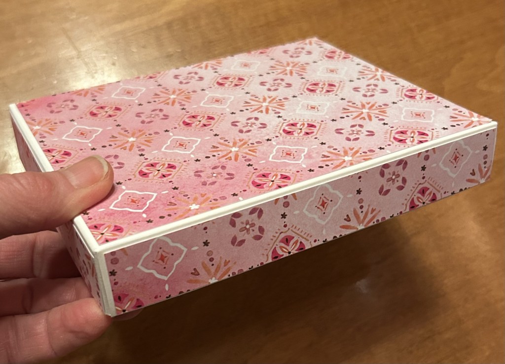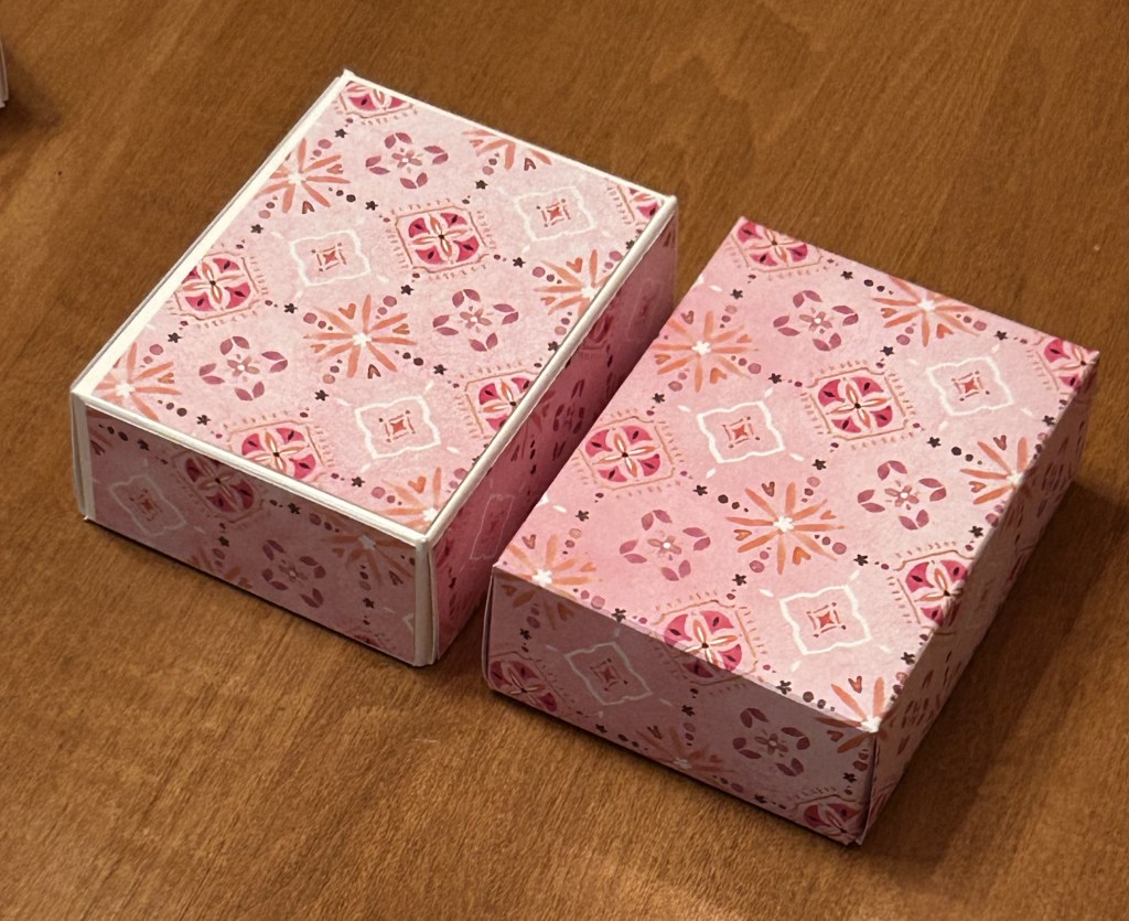 This evening I worked on making some PDF versions of the instructions for the boxes that I’ll be making tomorrow in the CHMA Arts for All program. Box 113 is sized to hold A2 cards. Box 407 is sized to hold bars of soap that I’ve already bought to include in my Shoeboxes next year. I’ll include some details about those in tomorrow’s post.