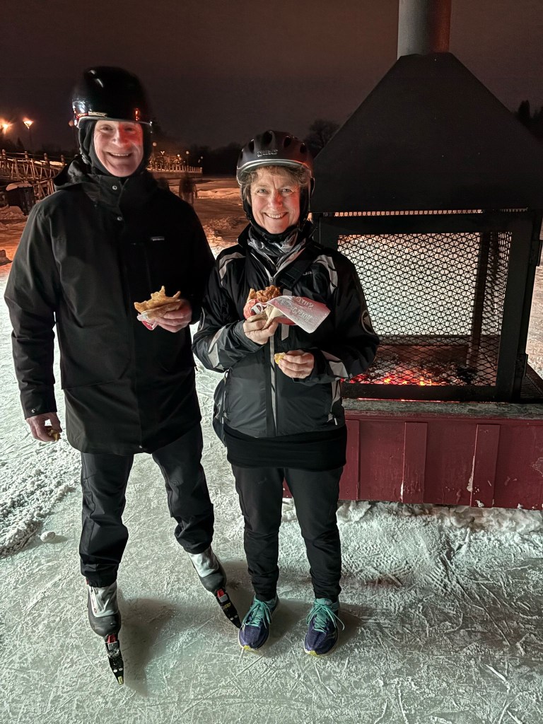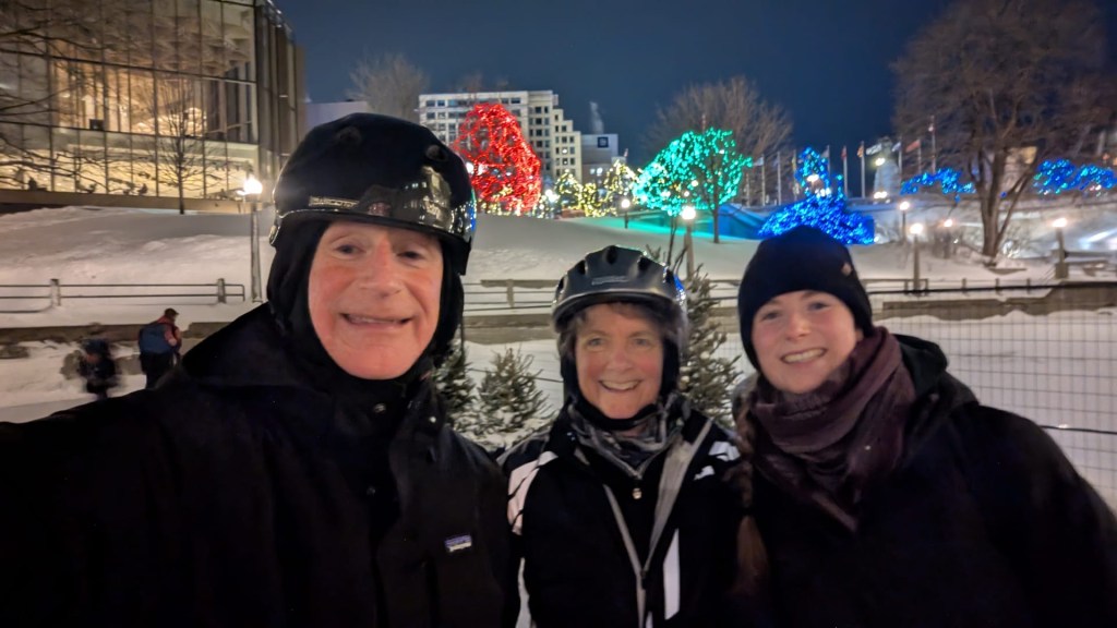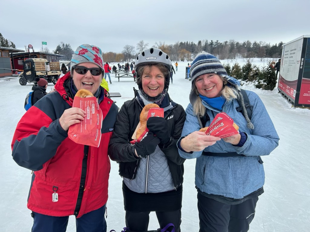 Today I’ll be meeting Anne and Andrea for a skate on the canal. It has been wonderful to have the canal in such excellent condition this year. And yet I’ve only managed to get out twice this year. But that’s a lot more than the zero times the last few years. It wasn’t even open 2 years ago and only for 1-2 days last year. The first time out this year was with Roland, Stef and Georgia when they were in town for mom’s Celebration of Life and had Thursday off – it was fantastic to skate mid-week on a crisp, cold day. The ice was in excellent shape and there weren’t that many skaters out. The second time skating was with Roland and Heidi one evening. It wasn’t quite so crisp but the canal was still in excellent condition. And, as usual Beavertails are the best after a skate.