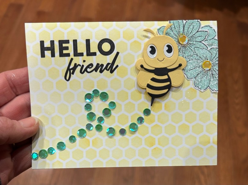 We had 3 participants in our in-person Card Crew program at the Dementia society with 2 volunteers. Everything went well making cards similar to ones that I had made with my Spellbinders Advent calendar supplies. The husband of one of the participants gave me a card that his wife made last week to take home in which he had generously included a gift card. It was so lovely to see his wife’s shaky signature; I remember how my mom’s handwriting gradually deteriorated until she was no longer able to sign her name. It’s not easy aging, and living with Dementia adds an extra level of challenge and caring for a person with for Dementia is even more daunting. I love seeing how much the husbands of two of my participants are so patient and loving with their wives and hearing from the wives in class how much love and appreciation they have for their husbands.