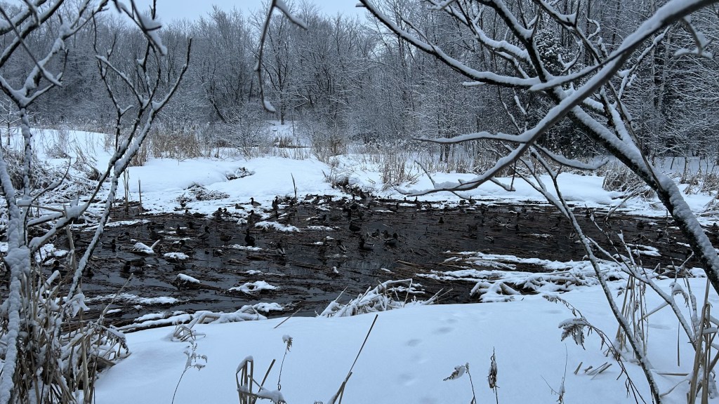 It was certainly a gorgeous morning to be out walking Luna in the forest. It was magical with all of the snow still stuck onto the trees. I am pretty sure that the ducks are trying to pick their nesting spots because there are a lot more of them hanging around the shallow section of the pond than their usual spot in a deeper section of the pond. I am so thankful to have a beautiful conservation area along the river so close to our house. And for having a dog to get me walking down there on a very regular basis.