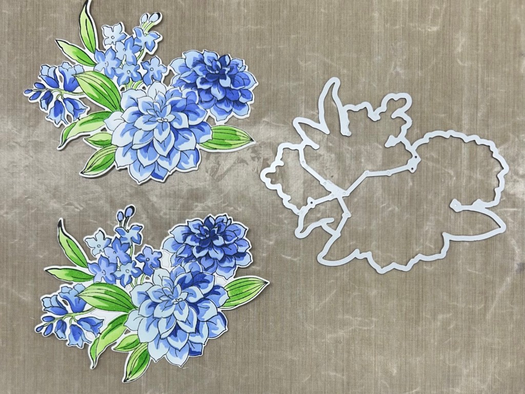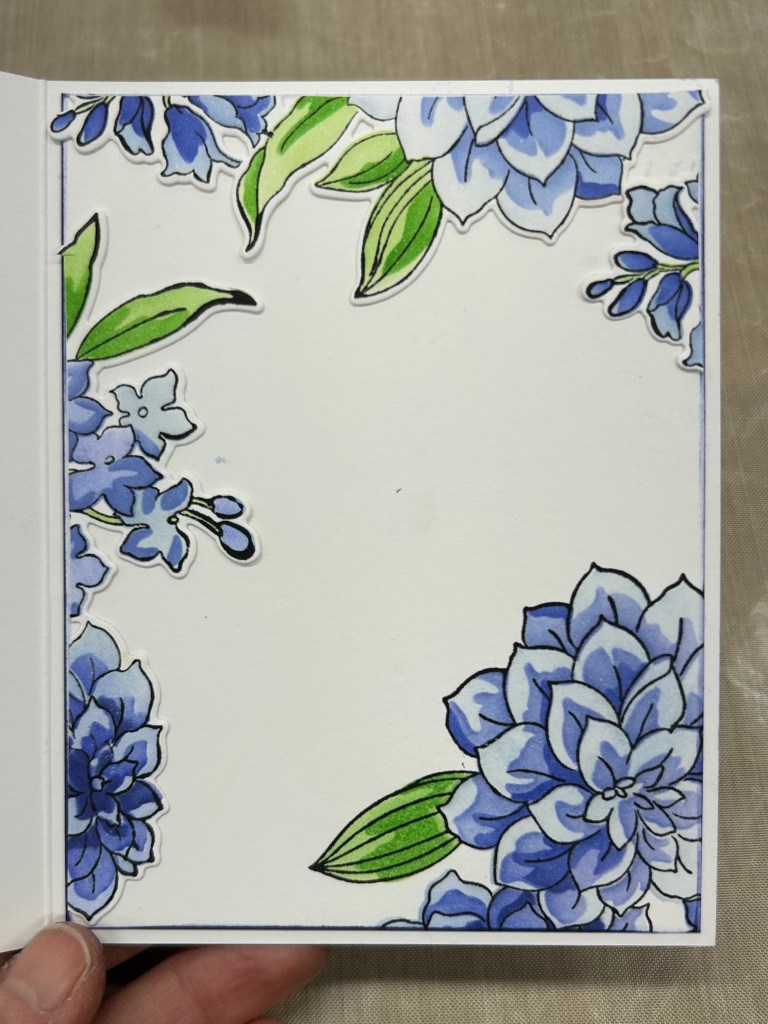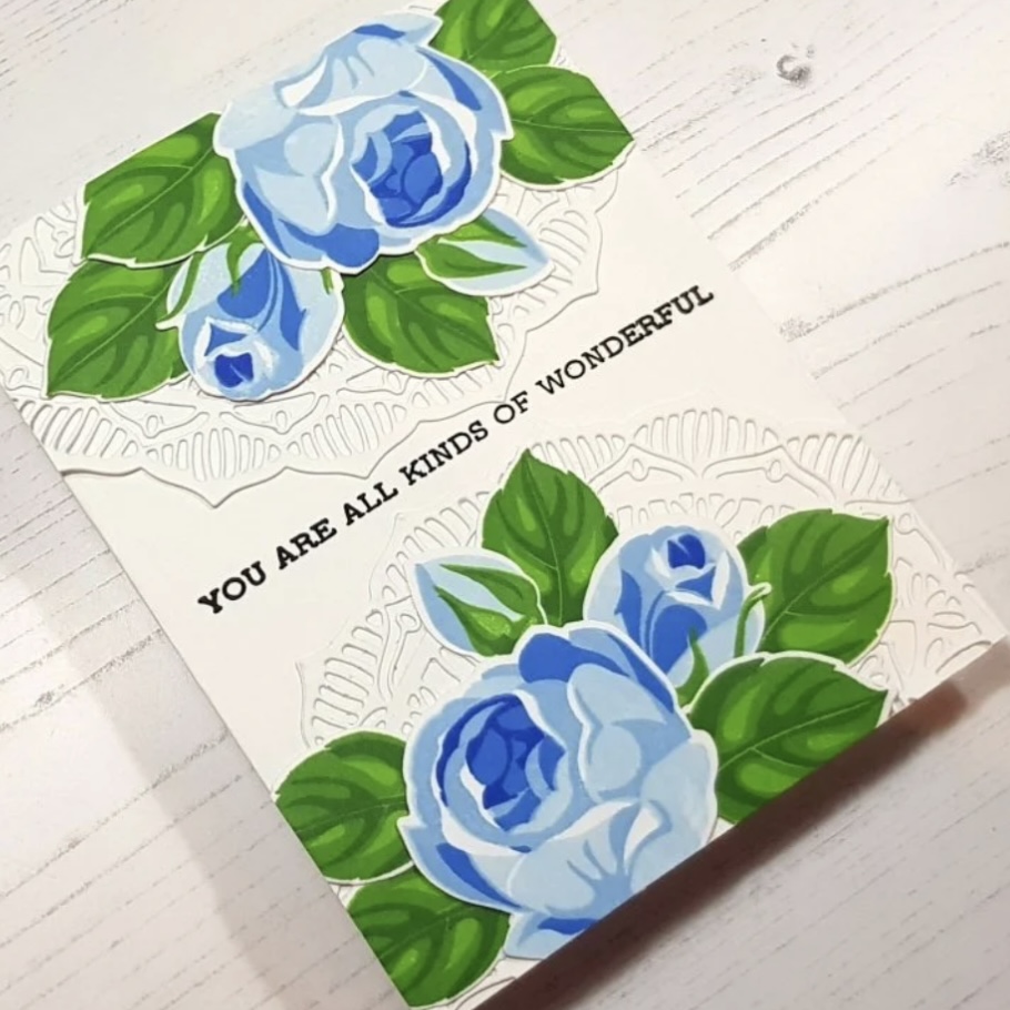 This is the design inspiration from the Altenew All About Layering 4 Lesson 6a class. I didn’t have a suitable die so I opted to use a stencil for background texture on my card front.