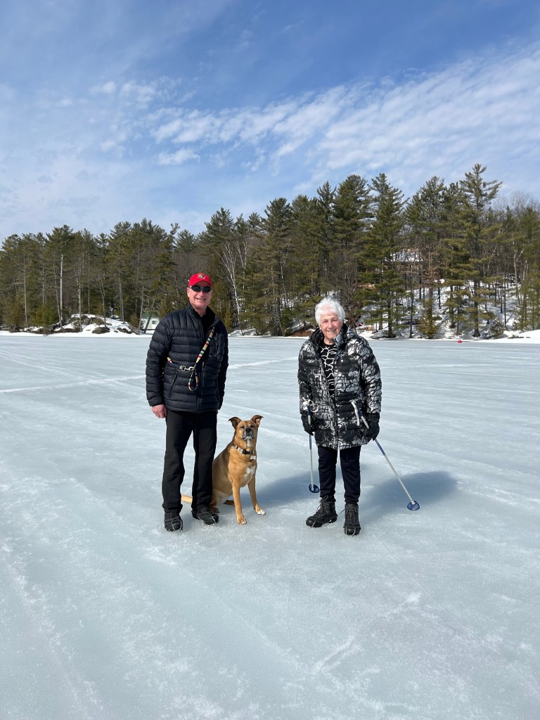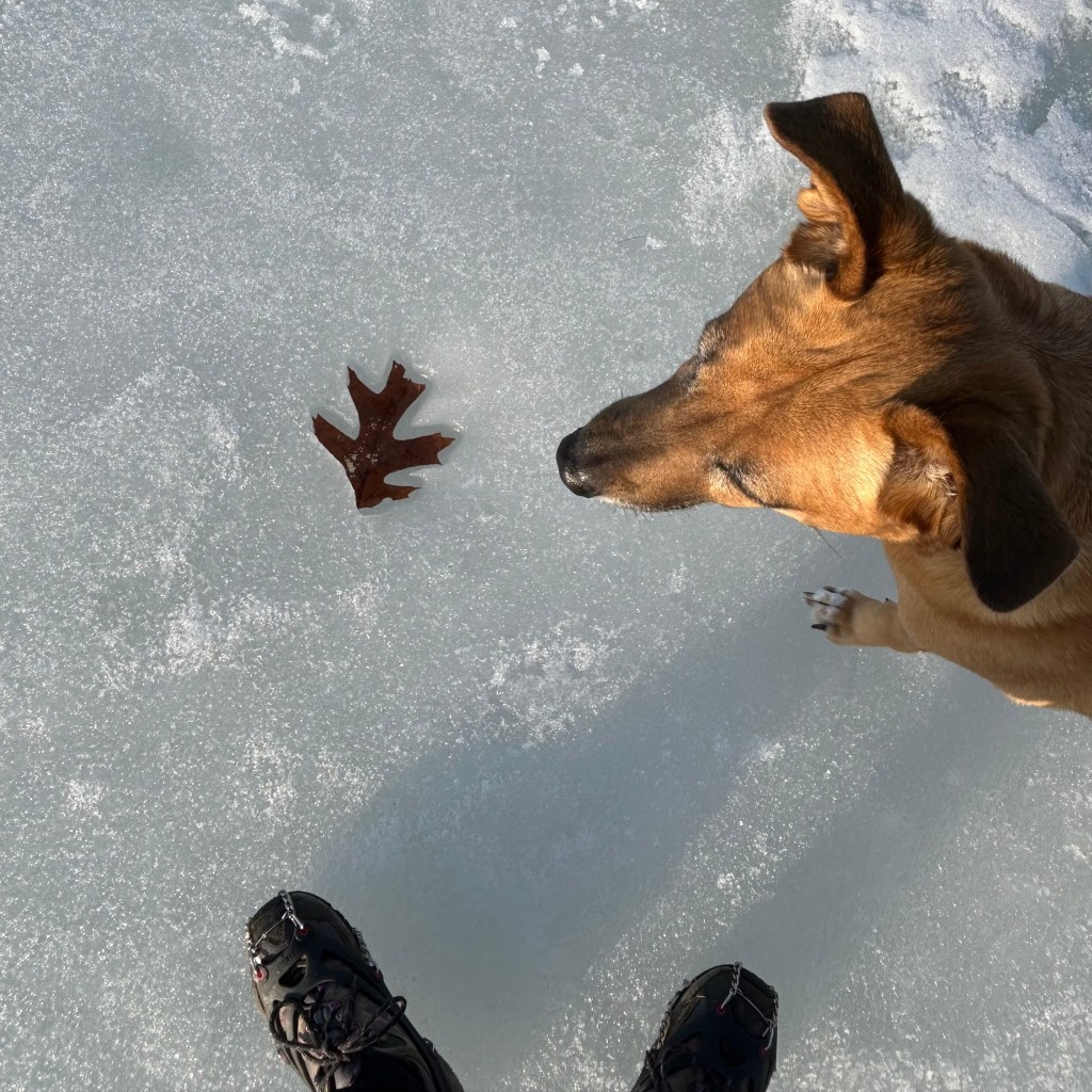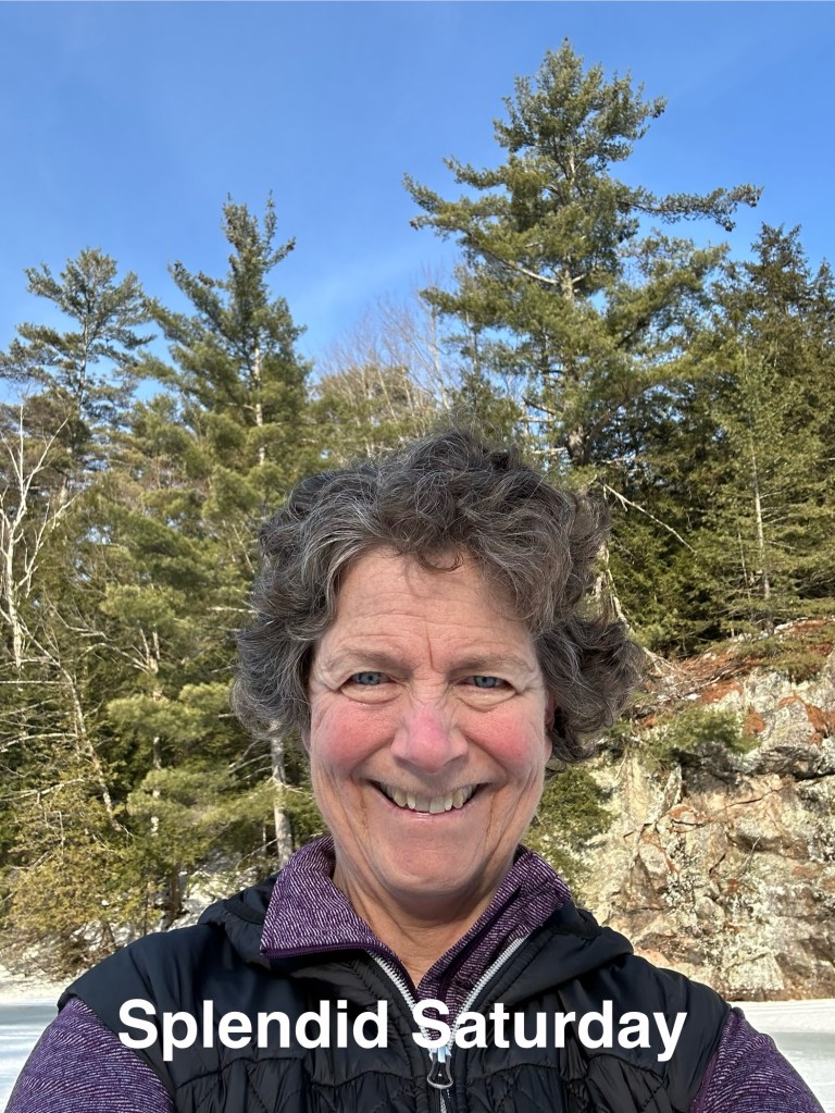 Uggh, 9:45 p.m. and I’m just starting to write some words for today. But it has definitely been a splendid day. Starting with my walk with Luna this morning. It was great that it did get cool enough overnight to make the ice solid instead of slushy again. The sunshine was splendid. My breakfast pancakes with maple syrup were spendid. As was the time I spent making a card. My walk mid-morning on the softening lake with Roland, Poldi and Luna was also splendid with the warm wind whispering the news that spring’s on its way. Watching Heidi play ringette was splendid. And taking Luna for another walk in warmth of the afternoon. And having family and neighbours over for dinner. And playing Bananagrams.