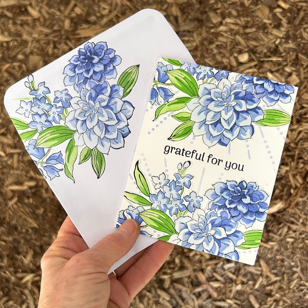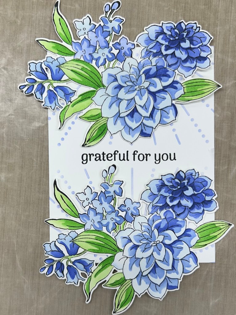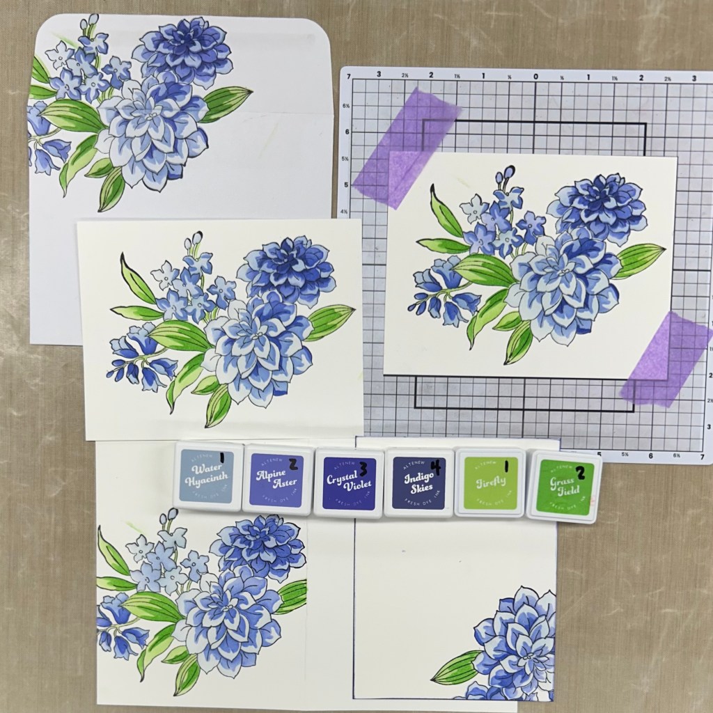 Card 13 | Altenew All About Layering 4 Lesson 6a | Altenew Build a Garden Dear Dahlia outline stamp and layered stencils.