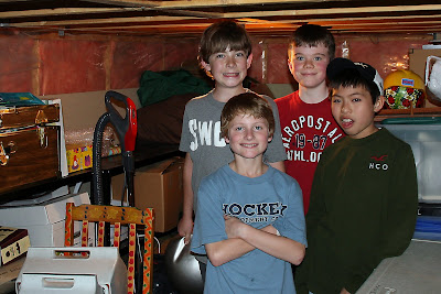 Saturday: Roland and Heidi had soccer practice from 9:00-11:00. I took Stefan out to Embrun for his 11:40 game (we took a bit of a scenic route since I missed a turn). Another loss. After the game, Stefan had lunch with his team out in Embrun and I headed home for Heidi’s 1:00 book club. She baked cookies and the other girls brought lots of goodies. They spend more time eating and chatting than discussing the book (Sketches by Eric Walters). I sent them out to do some sidewalk chalk art (which was in the book) since it was a beautiful afternoon. Roland went out to see Stefan’s second game. After book club, Joanne drove Heidi, Emily and Emma to South Keys for a movie. I picked up some veggies which we brought with us to the Jordan’s where we had a fun filled evening with friends including the Mortimores and Lams. After dinner and watching the ceremony for Daniel Alfredson’s 1000th game) the boys played XBox while Emma and Heidi (dropped off by Rosemary after the movie) watched a video in the basement. By the time I got around to seeking the boys out for my picture of the day they were playing hide and seek. A great day filled with lots of activities and friends.