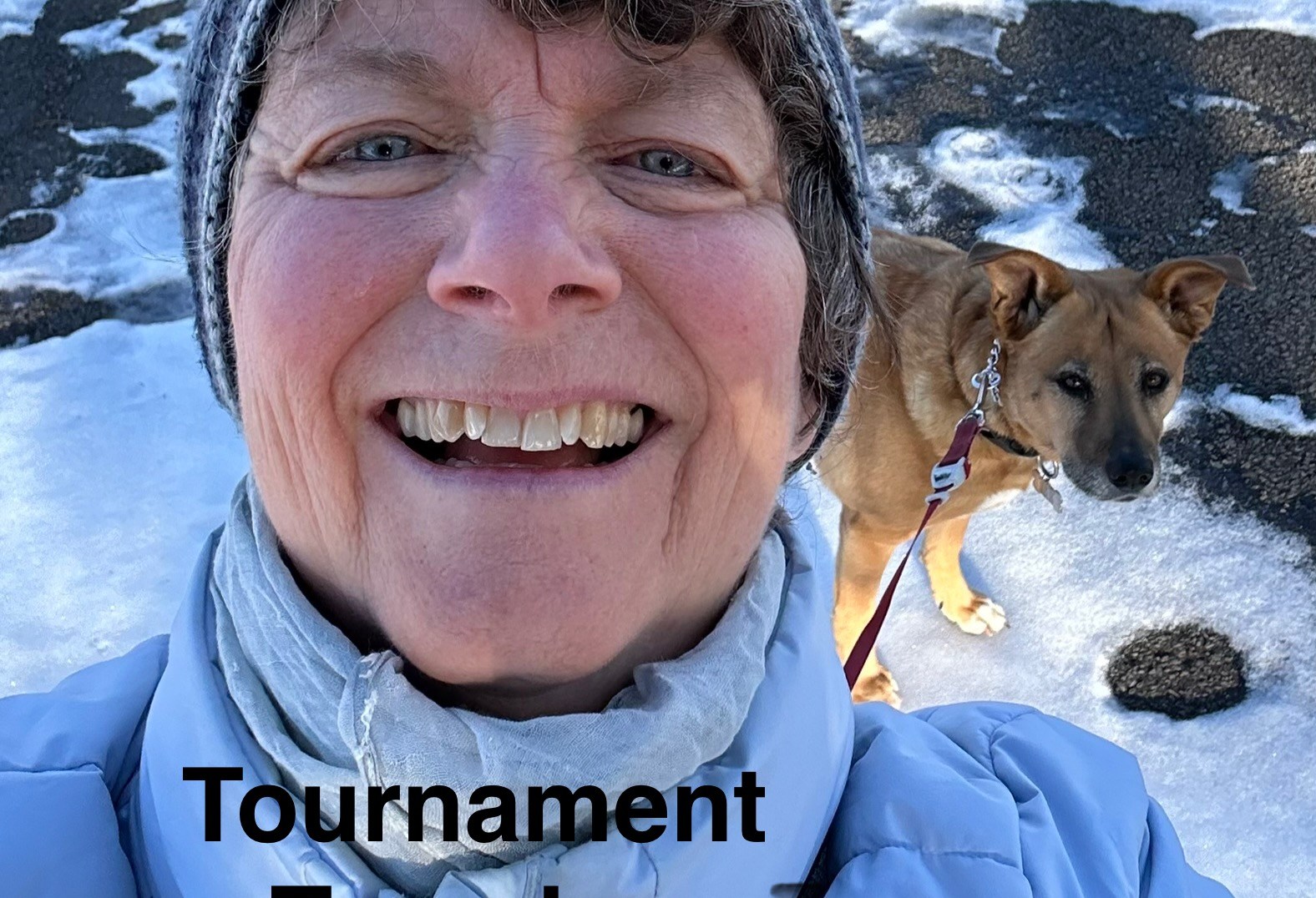Roland was up early for another volunteer shift that the ringette tournament. I slept in, but still walked Luna before heading to the pool for what ended up being only a 10 minute swim. But I’m still glad that I went. In the photo I took this morning, Luna seemed to be anticipating her displeasure of being left at home for quite a bit of the day because we were going to be away from the house to watch Heidi’s 2 tournament games today. Luna did get out for a second walk with Roland and me after he got home from his morning volunteer shift. We were able to go in the conservation area because the snow/ice was still frozen. As usual, I like to see how the stream at our usual turnaround point has changed since the last time. It’s totally clear of snow and ice now except for along the shore. After tonight’s game I considered changing my theme to two win Tuesday. Both games today were very exciting; very close games. They played Saskatchewan and BC. I visited Vicki who lives in Orleans near the arena after the first game. It was great to see a lot of Heidi’s teacher colleagues out cheering her on, complete with handmade signs. And to talk with Jenna, whom Heidi played several years of ringette with but whom she had first met when Jenna coached her starting way back when she was 11. Heidi’s likely retiring from NRL next year and will play on Jenna’s team. I couldn’t make my usual Tuesday evening walk but did get to see a friend briefly to pick up her prescription paperwork and drop off her filled prescription. I’m glad that the schedule worked out such that I could get to the pharmacy for her. And Luna got her third outing of the day with Roland while I ate my dinner.